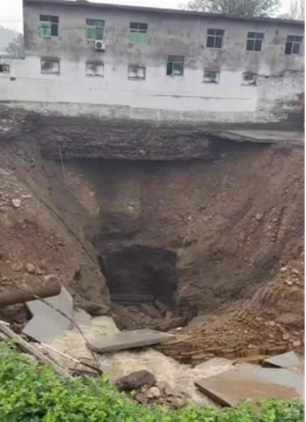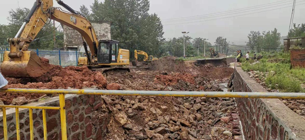 自7月17日以來,河南遭受極端強降雨天氣,分公司駐地登封市白坪鄉(xiāng)遭遇歷史有記錄以來降水峰值。白坪鄉(xiāng)前期存在大量煤礦,地下存在采空區(qū),連續(xù)強降雨天氣造成白坪小區(qū)北側(cè)道路塌陷,目測塌陷方量1600m3,造成河道改道,洪水沿塌陷區(qū)倒灌入地下。7月21日上午10時許白坪分公司接到白坪鄉(xiāng)政府險情通知,立即組織人員及設(shè)備趕赴現(xiàn)場進行搶險救援工作,調(diào)派挖機兩臺、汽車兩輛,其中一臺挖機去塌陷區(qū)進行險情處理,另一輛挖機配合汽車在礦山裝料運輸至塌陷區(qū)。目前位于塌陷區(qū)處理險情的挖掘機24小時不間斷作業(yè),力爭以最快速度排除險情,不計代價配合當?shù)卣龊梅姥淳葹?zāi)工作,做到央企在關(guān)鍵時刻的責(zé)任擔(dān)當。  塌陷區(qū)  挖掘機到現(xiàn)場進行初步作業(yè)  險情處理工作初見成效 |