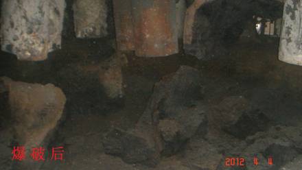 兗州中材建設(shè)有限公司云維項目部 實施石墨電極分解爆破 4月4日,應(yīng)云維乙炔化工有限公司(業(yè)主)要求,我項目部對其廠區(qū)1#電石爐內(nèi)石墨電極成功實施分解爆破。 本次爆破點位于業(yè)主電石車間二層電石爐內(nèi),技術(shù)人員和安全員經(jīng)現(xiàn)場勘查發(fā)現(xiàn):石墨電極為直徑1.2m、高約1.5m的圓柱狀石墨體,從中心呈輻射狀均勻分布12塊約1cm厚鋼板。三個電極呈“品”字狀分布在一個直徑約7~8米的幾乎密閉的鋼制反應(yīng)爐內(nèi)(有洞口)。爆前充分勘察了爆區(qū)周圍的實際情況,結(jié)合從網(wǎng)絡(luò)上搜集的對石墨電極的性能分析和以往的爆破經(jīng)驗,選用合適的爆破器材,擬定了幾種爆破方案。充分分析爆破方案的可行性后,選擇其中可行性較高的兩種方案進(jìn)行了試爆,結(jié)合兩次試爆效果,經(jīng)調(diào)整爆破參數(shù)后,最終成功拆除。 本次爆破對僅隔約10米遠(yuǎn)、正在生產(chǎn)的2#爐和庫房未產(chǎn)生任何影響。 這次爆破工作雖小,但我們本著謹(jǐn)慎、科學(xué)的態(tài)度對待。從爆破參數(shù)的選擇到安全警戒都認(rèn)真小心,取得了預(yù)想的效果。 通過這次爆破,積累了對巖石以外材料的爆破經(jīng)驗,也增加了我項目部尤其是年輕人工作技能。也到了業(yè)主的認(rèn)可。 孟永旺