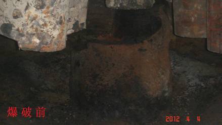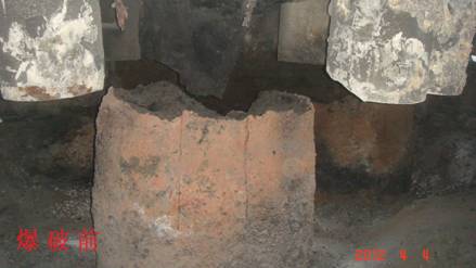 兗州中材建設有限公司云維項目部 實施石墨電極分解爆破 4月4日,應云維乙炔化工有限公司(業(yè)主)要求,我項目部對其廠區(qū)1#電石爐內(nèi)石墨電極成功實施分解爆破。 本次爆破點位于業(yè)主電石車間二層電石爐內(nèi),技術(shù)人員和安全員經(jīng)現(xiàn)場勘查發(fā)現(xiàn):石墨電極為直徑1.2m、高約1.5m的圓柱狀石墨體,從中心呈輻射狀均勻分布12塊約1cm厚鋼板。三個電極呈“品”字狀分布在一個直徑約7~8米的幾乎密閉的鋼制反應爐內(nèi)(有洞口)。爆前充分勘察了爆區(qū)周圍的實際情況,結(jié)合從網(wǎng)絡上搜集的對石墨電極的性能分析和以往的爆破經(jīng)驗,選用合適的爆破器材,擬定了幾種爆破方案。充分分析爆破方案的可行性后,選擇其中可行性較高的兩種方案進行了試爆,結(jié)合兩次試爆效果,經(jīng)調(diào)整爆破參數(shù)后,最終成功拆除。 本次爆破對僅隔約10米遠、正在生產(chǎn)的2#爐和庫房未產(chǎn)生任何影響。 這次爆破工作雖小,但我們本著謹慎、科學的態(tài)度對待。從爆破參數(shù)的選擇到安全警戒都認真小心,取得了預想的效果。 通過這次爆破,積累了對巖石以外材料的爆破經(jīng)驗,也增加了我項目部尤其是年輕人工作技能。也到了業(yè)主的認可。 孟永旺