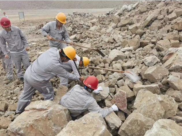 上午10時整,演練正式拉開序幕。假設(shè)情況是該露天礦山某區(qū)域發(fā)生了邊坡坍塌,造成一名作業(yè)人員腿部受傷被困。接到報告后,項目副經(jīng)理楊宇立即啟動應(yīng)急預(yù)案,迅速組織了由醫(yī)療救護組、應(yīng)急搶險組、警戒保衛(wèi)組、物資保障組等部門人員組成的應(yīng)急救援隊伍,攜帶救援裝備,迅速趕赴事故現(xiàn)場。同時,通訊保障組也迅速建立起臨時通訊網(wǎng)絡(luò),確保現(xiàn)場信息暢通無阻。