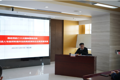 郭正勇從三方面進行了深入闡述和精彩宣講。一是深刻理解二十大報告中關于推動綠色發(fā)展,促進人與自然和諧共生的深刻內(nèi)涵;二是全面把握人與自然和諧共生新任務,聚力踐行央企綠色發(fā)展使命擔當;三是聚焦近期工作,強化擔當落實。